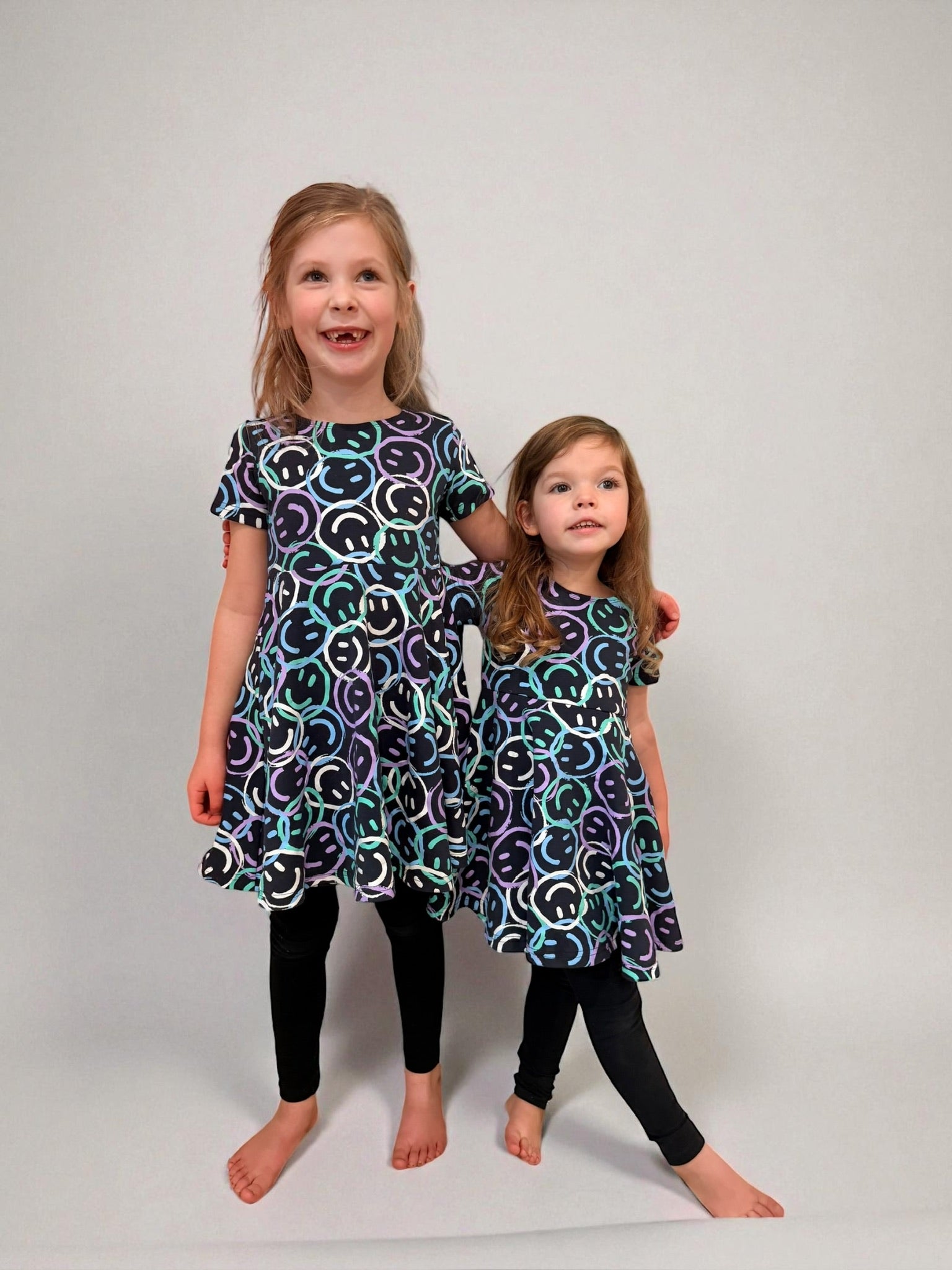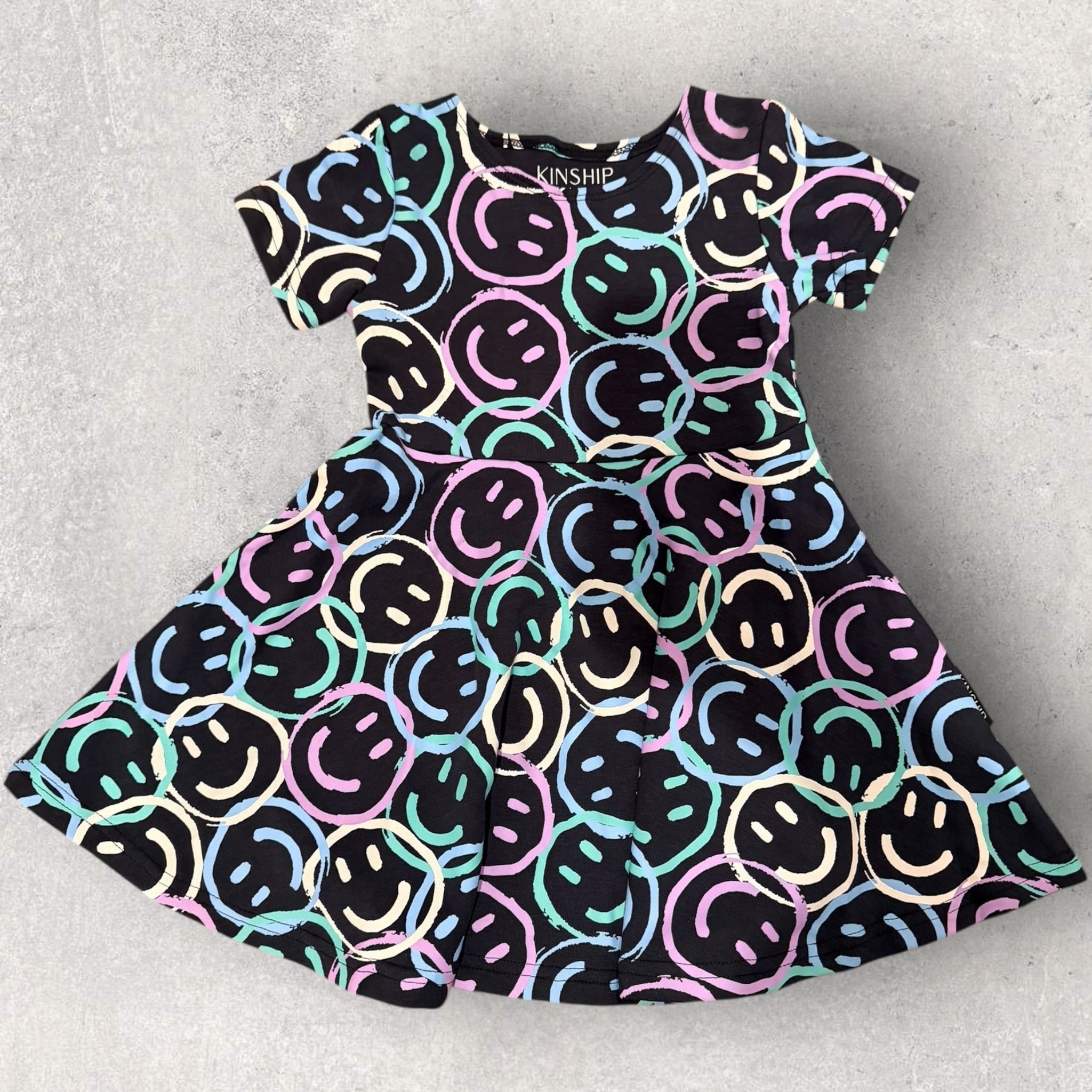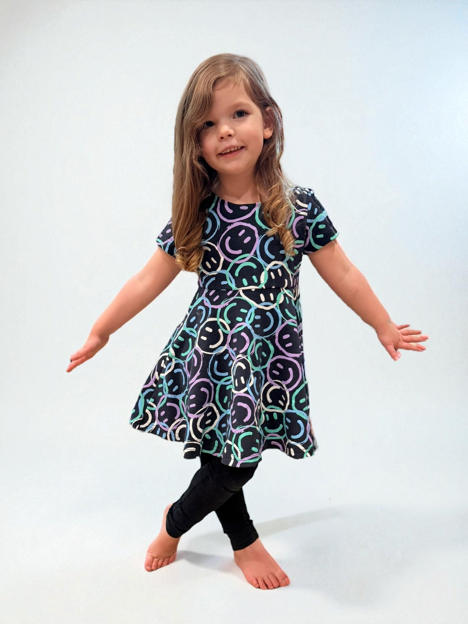 The Shades of Joy Twirl Dress captures the heart of childhood: playful, vibrant, and full of life. Featuring a premium screen-printed design and made from our favorite crewneck sweatshirt fabric, this dress is designed for layering and pairs perfectly with the Shades of Joy Crewneck. It’s a celebration of joy in every shade and season.
